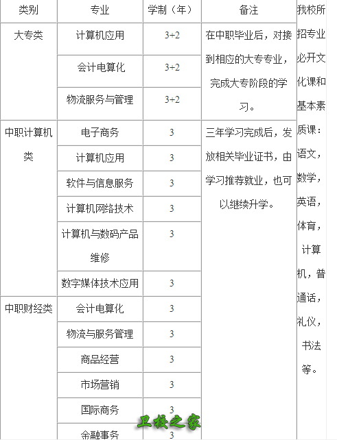 学校高中部为中等职业技术教育。现开设有财经、计算机、旅游、文秘等四大类专业,22个子专业。注重突出文化教学的基础地位、技能训练的核心地位和素质教育的中心地位。自1998年参加全国高职类高考以来,已有2500多人考入中国民航学院、重庆大学、西政、西师、重师等高等院校相关专业就读,其高考上线率已高达99%,上线人数连续八年居重庆市第一。同时,学校与北京、上海、厦门、重庆等158家用人单位建立了长期稳定的合作关系,为学生的实习、就业提供了可靠保证,毕业生当年就业率达98%以上。