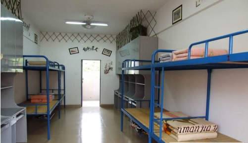 学生寝室是标准的学生公寓,6-8人间,上下床,有独立的卫生间,阳台、风扇、热水器。每个学生都有独立的书桌和衣柜,具体情况以学校安排为主。